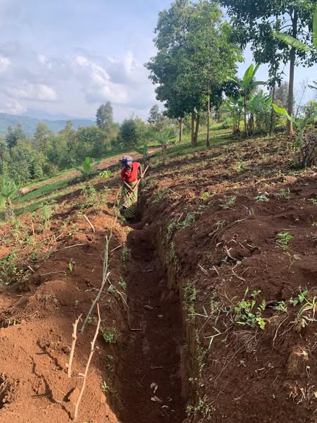 L’une des stratégies utilisée pour disséminer les approches AE dans les villages passe par les CEP. Ici, l’une des bénéficiaires entretient ses haies mortes ( fossés discontinue) dans son exploitation agricole.