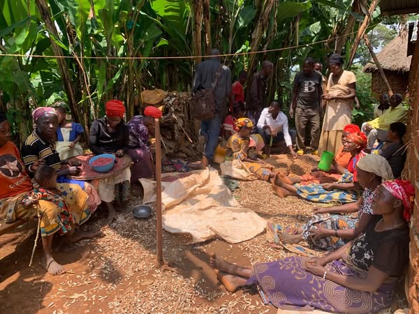 Pour ne pas dépendre d’intrants externes les bénéficiaires se sont structurés dans les chaines de solidarité semences. Ici les membres sont entrain de décortiquer et de trier les semences locales (Kirundo et Kuruza) pour la saison culturale B 2023-2024
