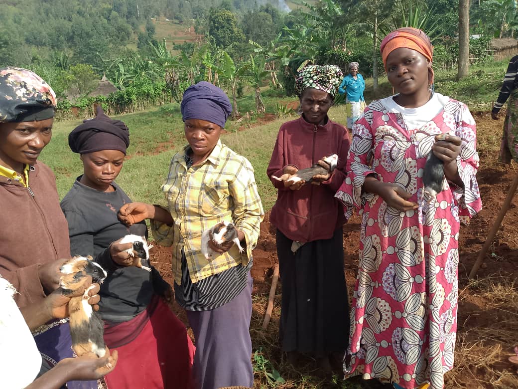 Distribution des cobayes pour l’élevage aux membres du Groupe solidaire BUNVIKANE du village BUSHADU